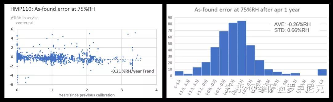 •通過不確定性計算得出的 ±0.5 %RH/年和 ±0.02 °C/年的預估漂移似乎是合理的